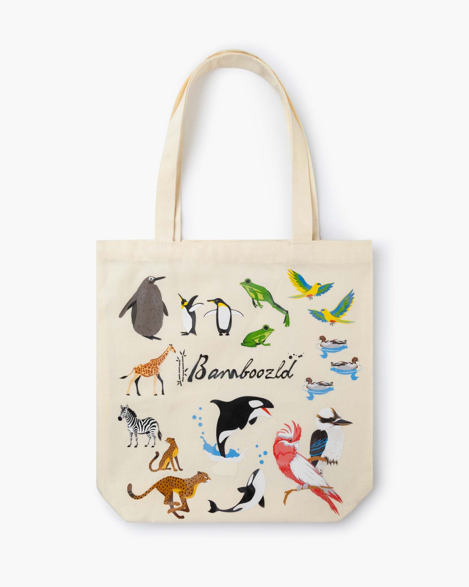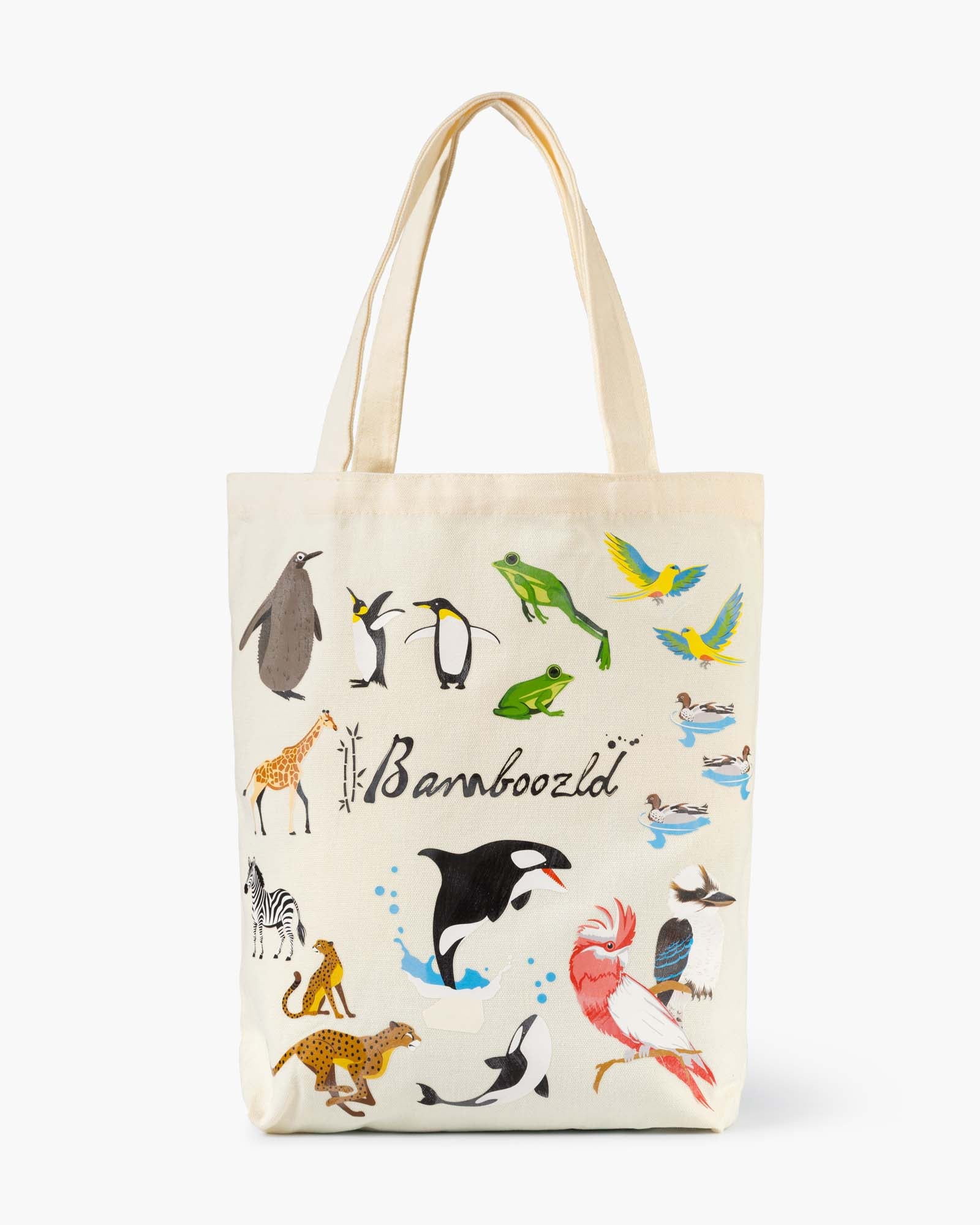 Bring a splash of fun to your everyday with our Bamboozld Summer Tote Bag. Covered in playful animal-inspired designs on both the front and back, this stylish tote is perfect for shopping, the beach, or carrying all your daily essentials.