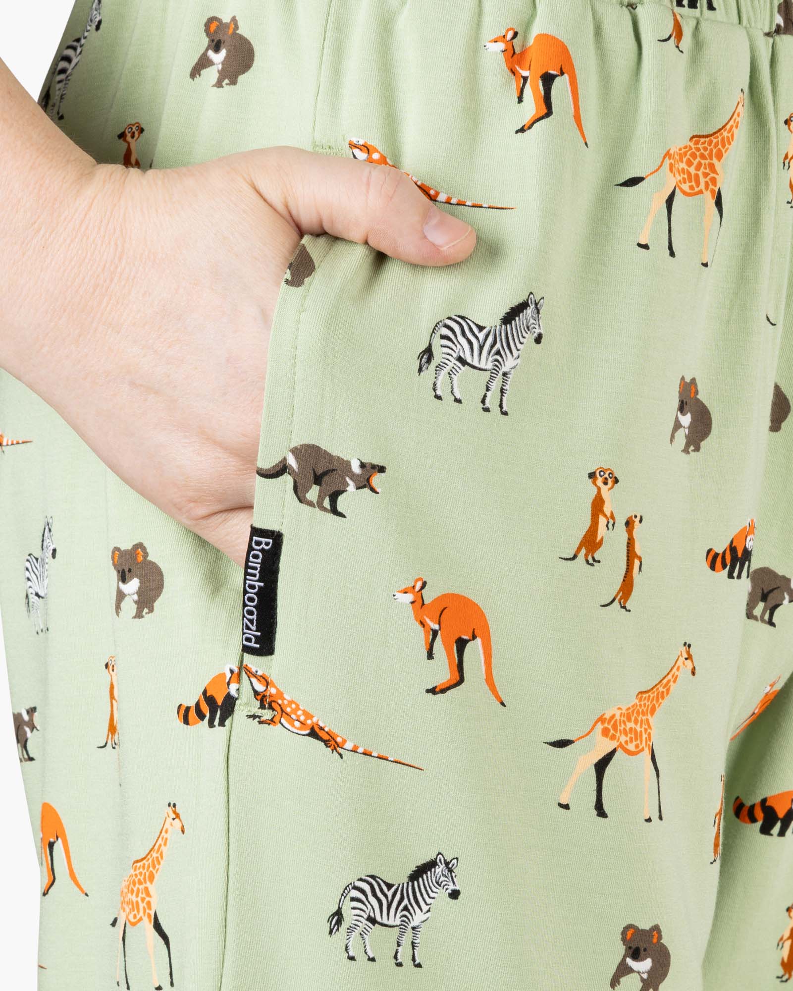 Unwind in comfort with our Men’s Wild Thing Bamboo Jersey Sleep Shorts. Featuring a playful all-over wildlife print on a fresh sage base, these shorts bring a fun touch to your downtime while delivering the incredible softness Bamboo is known for. Made from our signature sustainable Bamboo blend stretch jersey, they are lightweight, breathable and designed for ultimate relaxation whether you’re sleeping or lounging.